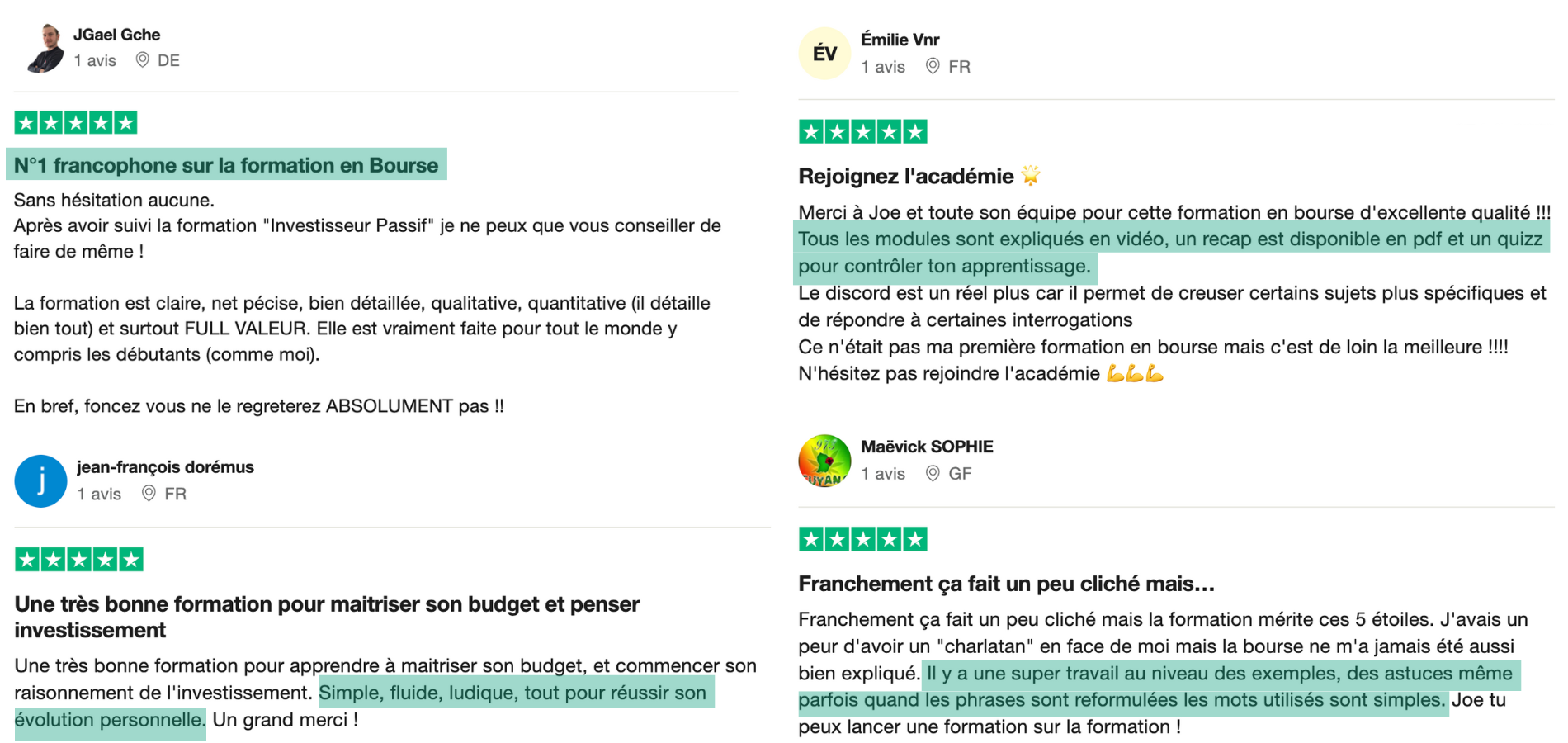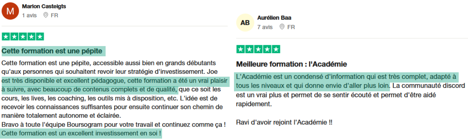 Ce programme a reçu une notation parfaite de 5 étoiles de la part de l'ensemble de ses membres, comme en témoignent les avis vérifiés publiés sur Trustpilot.