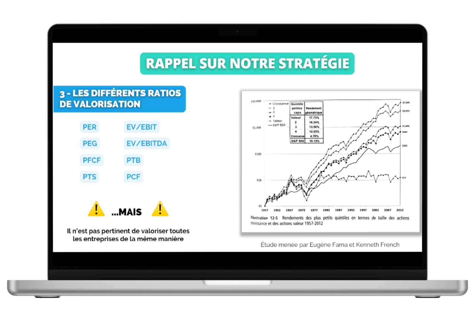 Découvrez et appliquez des techniques d'investissement de haut niveau, notamment l'investissement dans les small caps à haut potentiel et sécurisées, mais aussi l'investissement Value qui a permis aux plus grands investisseurs de l'Histoire d'avoir d'excellentes performances sur le long terme.