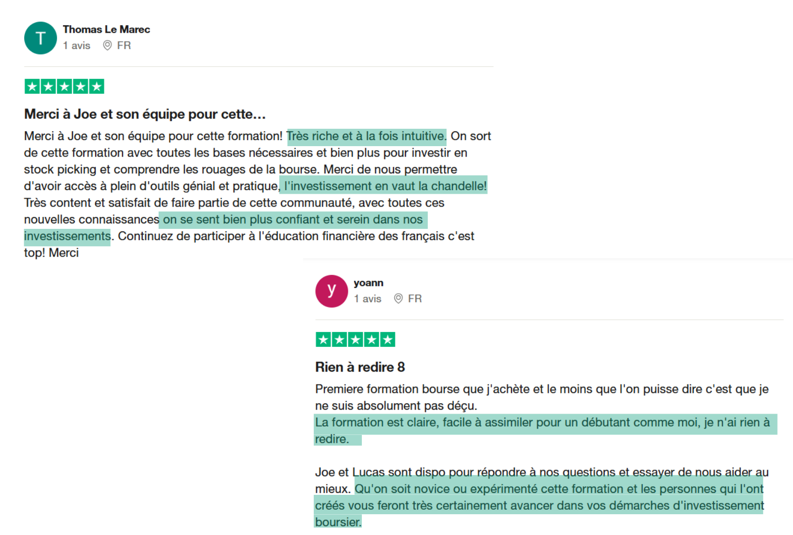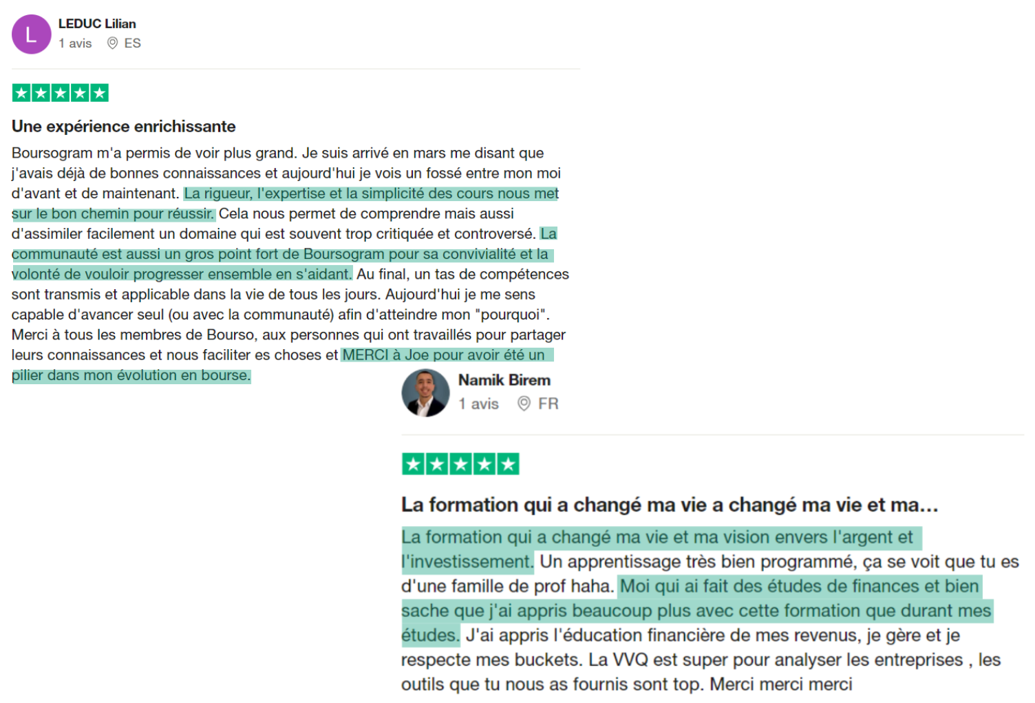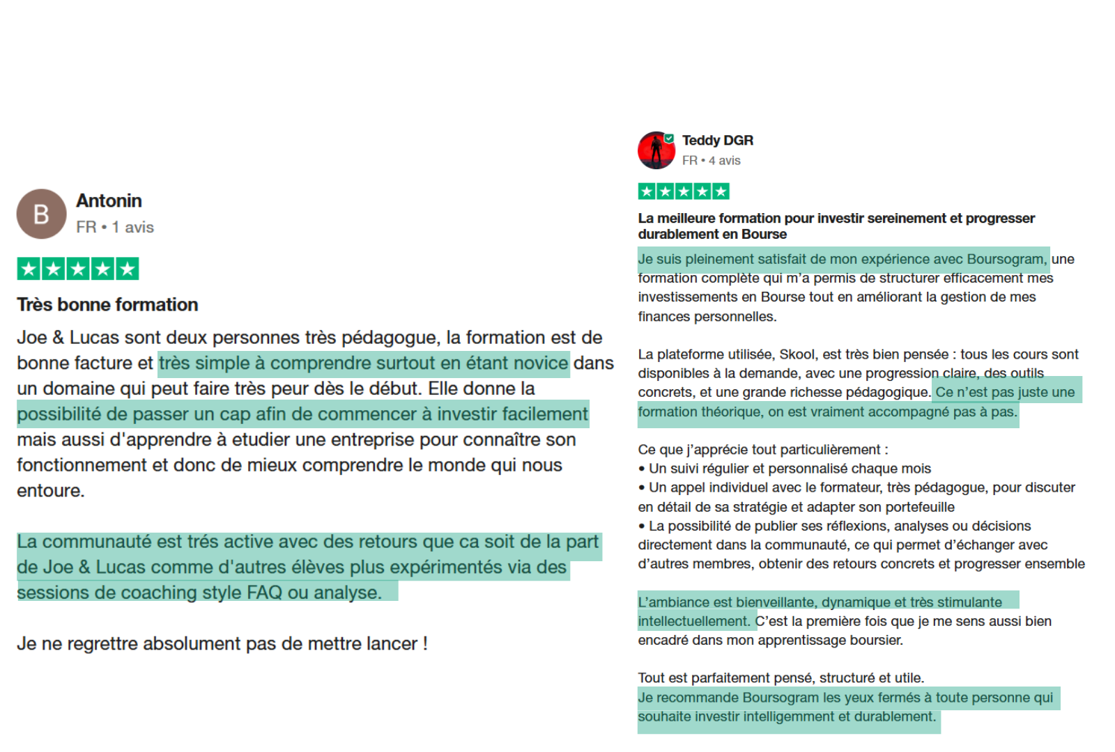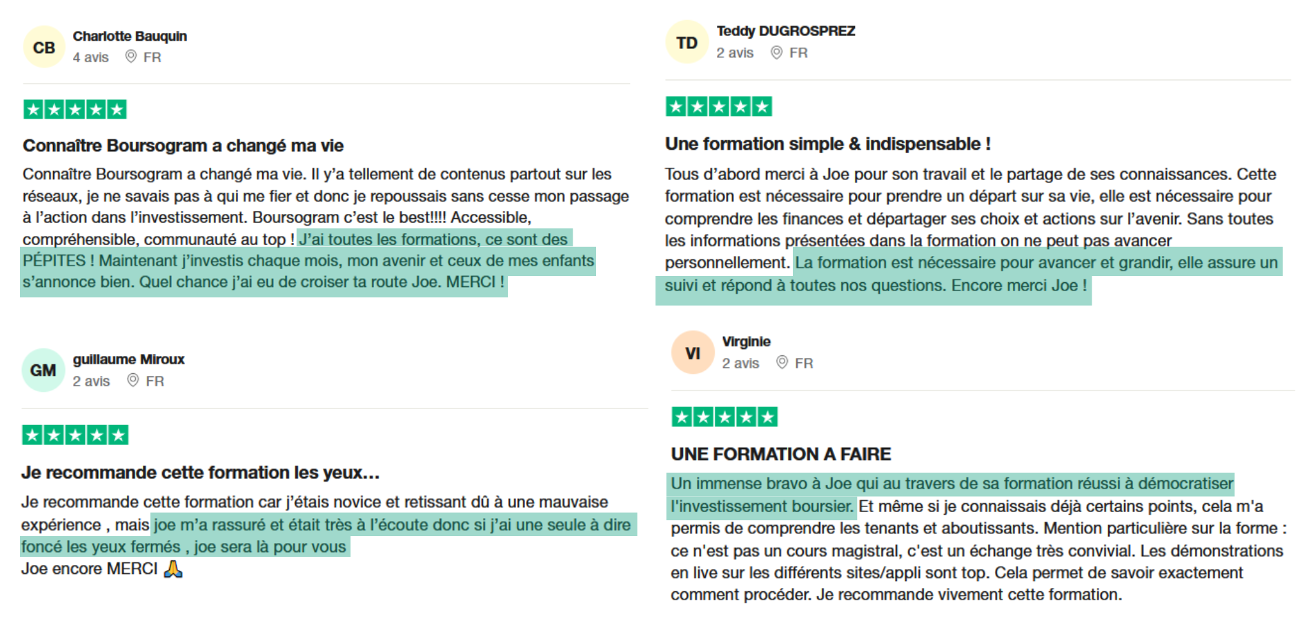 "Cette formation vaut vraiment le coup. On reprend tous les mécanismes de l'économie en général, les ETF, et la sélection d'entreprises, le calcul des ratios, etc. Tout est sourcé, c'est rassurant.