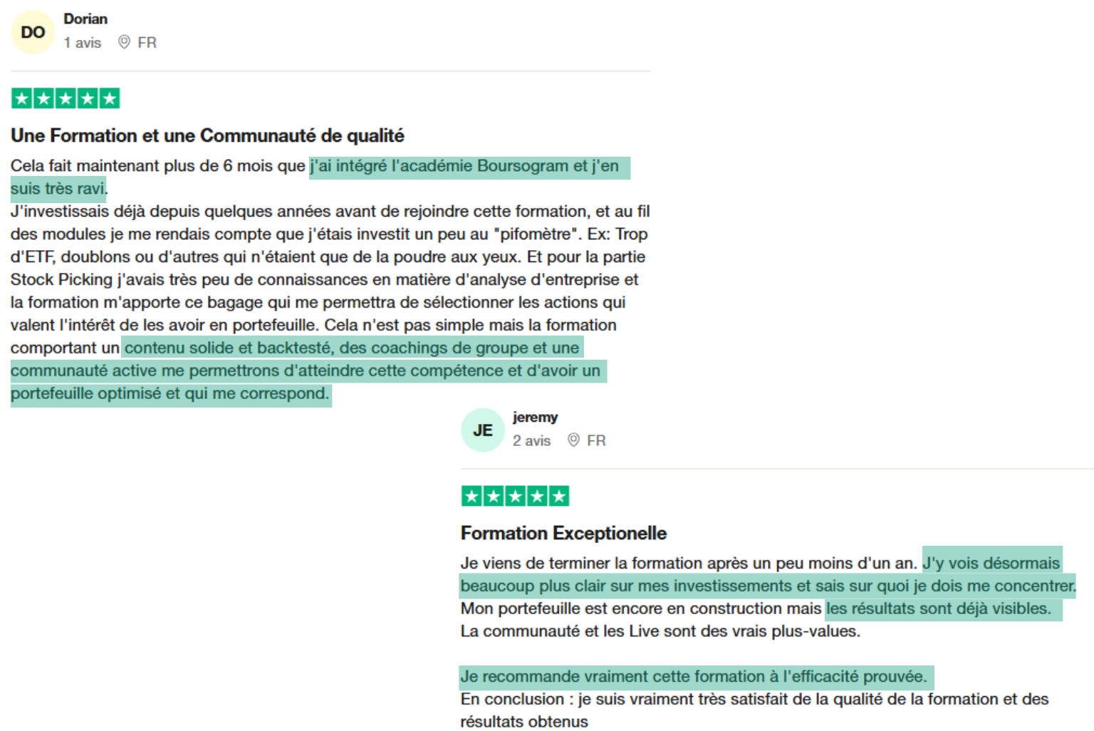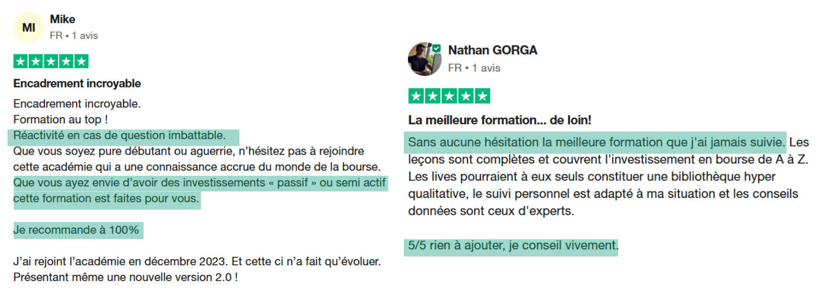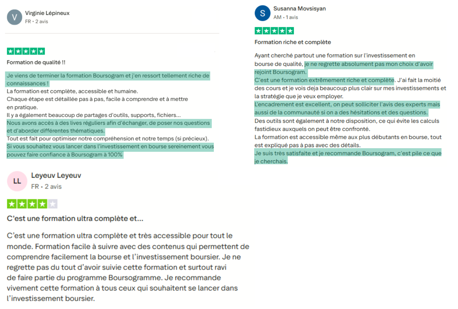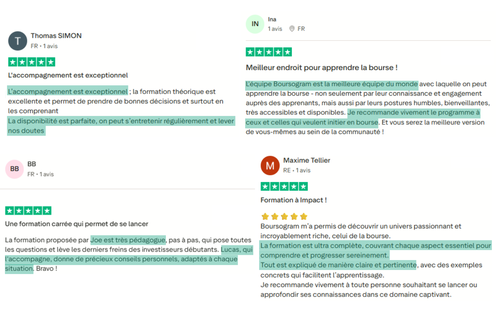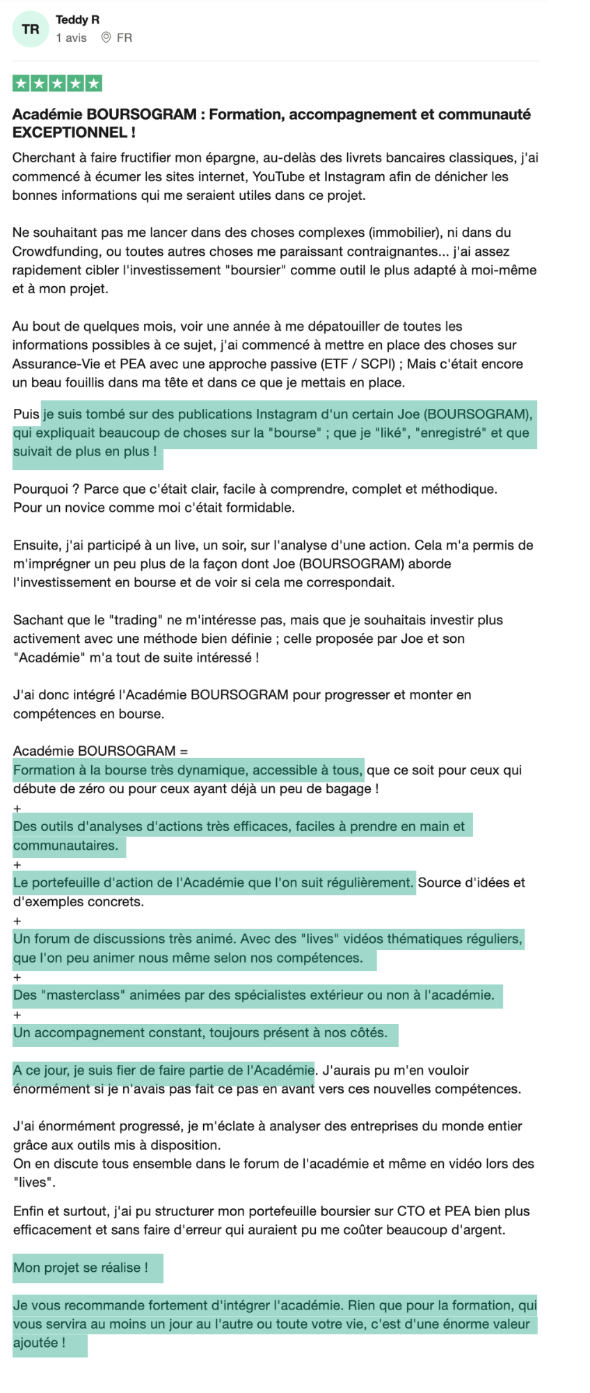"Cette formation vaut vraiment le coup. On reprend tous les mécanismes de l'économie en général, les ETF, et la sélection d'entreprises, le calcul des ratios, etc. Tout est sourcé, c'est rassurant.